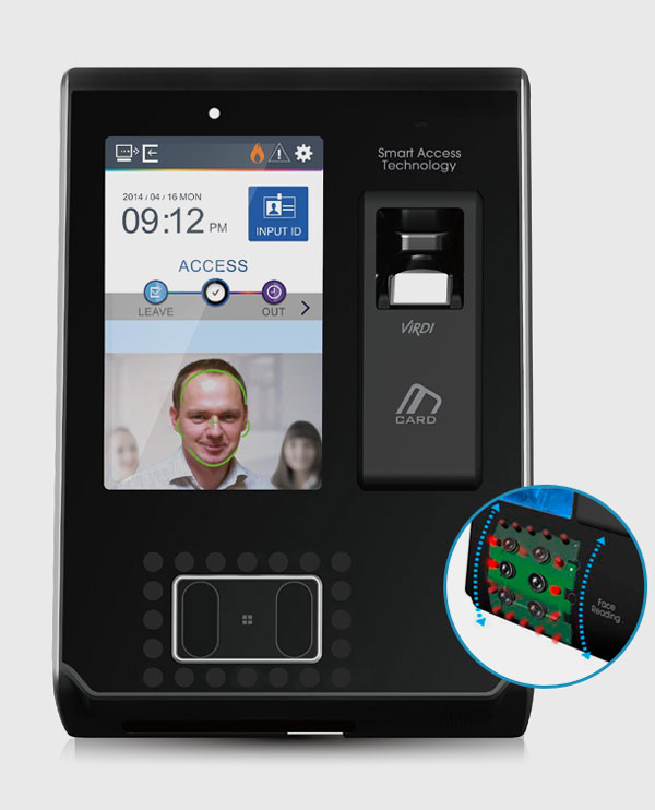 Sau những thành tựu của dòng máy chấm công vân tay. Virdi tiếp tục đưa ra thị trường những sản phẩm chấm chông kiêm kiểm soát ra vào nhận dạng bằng khuôn mặt. Trong số đó có AC-7000, AC-7000 là thiết bị cao cấp được hãng trang bị cả khả năng nhận diện bằng vân tay. Thẻ cảm ứng và khuôn mặt, thêm vào đó thiết bị được trang bị Chip xử lý Dual CPU cho tốc độ xác thực nhanh chóng và chính xác gấp đôi.