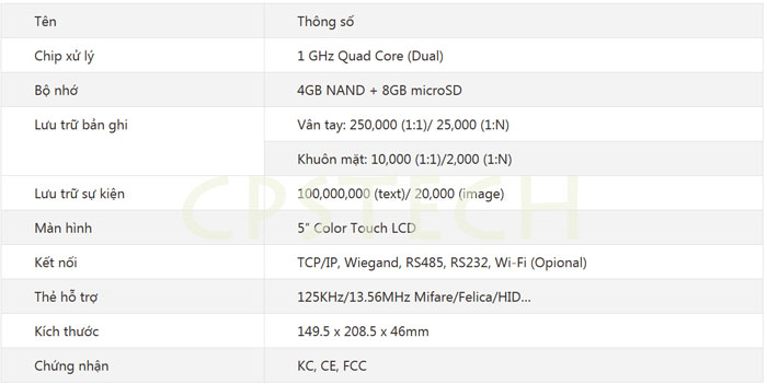 – Thời gian xác thực tăng gấp đôi bởi CPU kép : Dual CPU cung cấp tốc độ nhận diện khuôn mặt & dấu vân tay nhanh gấp đôi so với những dòng máy khác